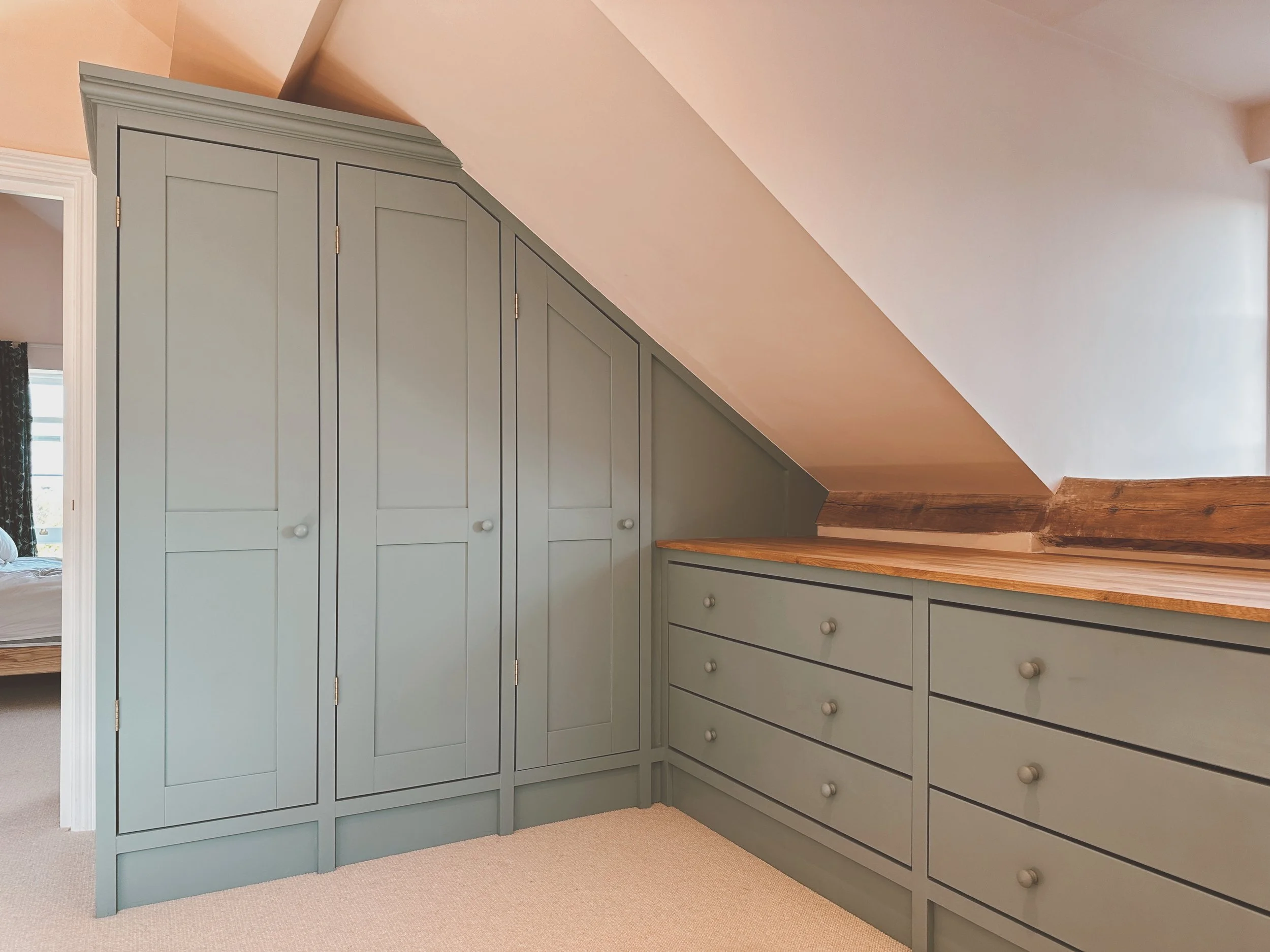 From angled wardrobes that fit perfectly into lofts and tricky corners to sliding door designs that maximise floor space with sleek, modern appeal or hinged doors for a timeless, elegant finish. At South Coast Bespoke, we design and build fitted wardrobes and storage solutions that make every inch count, combing thoughtful design with flawless function.